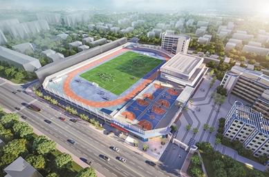 一个地块,可以楼上运动、楼下停车。项目地上部分将建成一个拥有1240个机动车位和466个非机动车位的现代化立体停车场,极大地缓解商圈、学校及老旧小区的停车压力。值得一提的是,停车场的天面与周边场地,被规划为高品质的文体空间,包括一个2530平方米的风雨体育馆和一个超过2万平方米的室外运动场,集成“停车、文体、交通”功能,彻底改变了原有场地的面貌。