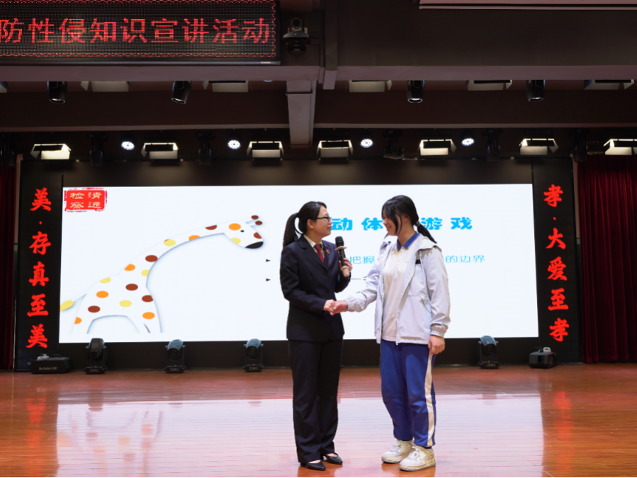 互动式教学,强化学生参与感。宣讲中,巧妙运用情景AB剧、道具演示、齐唱歌曲等形式,打破传统说教模式。在“如何对待性侵受害者”情景剧中,学生通过角色扮演体会歧视与友善对待的差异,深化“不谴责、不歧视、爱相待”的理念。