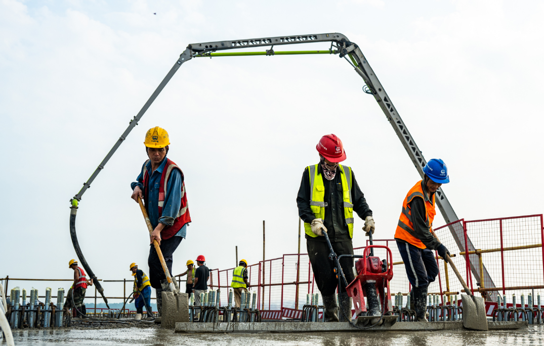 △北江特大桥混凝土浇筑收面。图源:广东交通集团