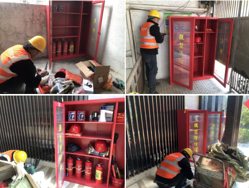 安装过程中,社区工作人员与物业施工人员全程联动,一方面严格监督施工质量与安装规范,确保柜内灭火器、水带、水枪、应急手电筒等器材配备齐全、性能达标;另一方面及时解答居民疑问,收集优化建议,营造了共建共治的良好氛围。