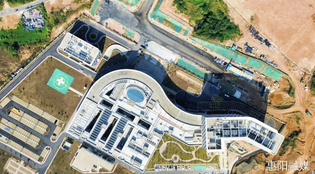 目前,医院一期项目建设进展顺利,医技综合楼、住院楼、感染楼等主体建筑及停车场已全部完工,楼顶“惠阳区第二人民医院”标识安装到位,成为新圩片区内醒目的民生地标。内部装修工作接近尾声,后续将开展全面卫生清扫与环境优化,为患者打造整洁、舒适、安全的就医环境。