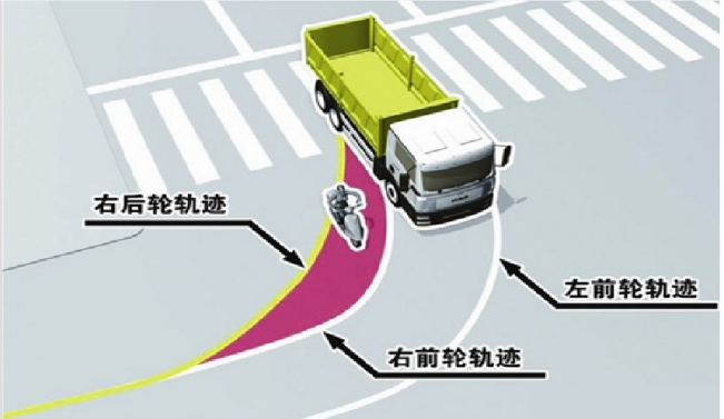 2、大型车辆内轮差区域是事故高发带,转弯时,请慢一点,不要凭经验“盲转”。