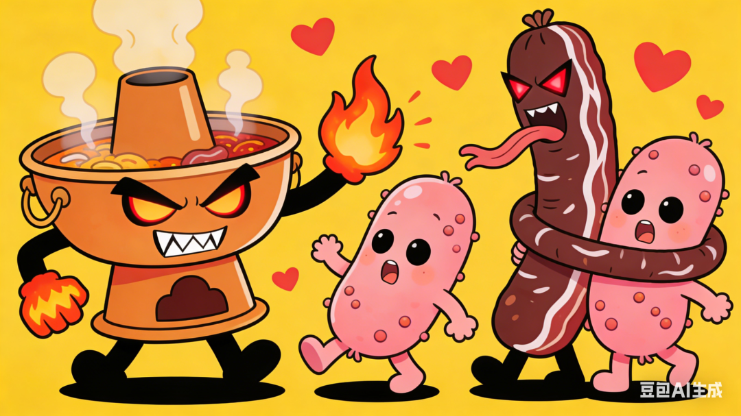 高脂红肉在高温下反复涮煮,会产生杂环胺、多环芳烃等致癌物,这些物质会直接损伤肠道黏膜DNA