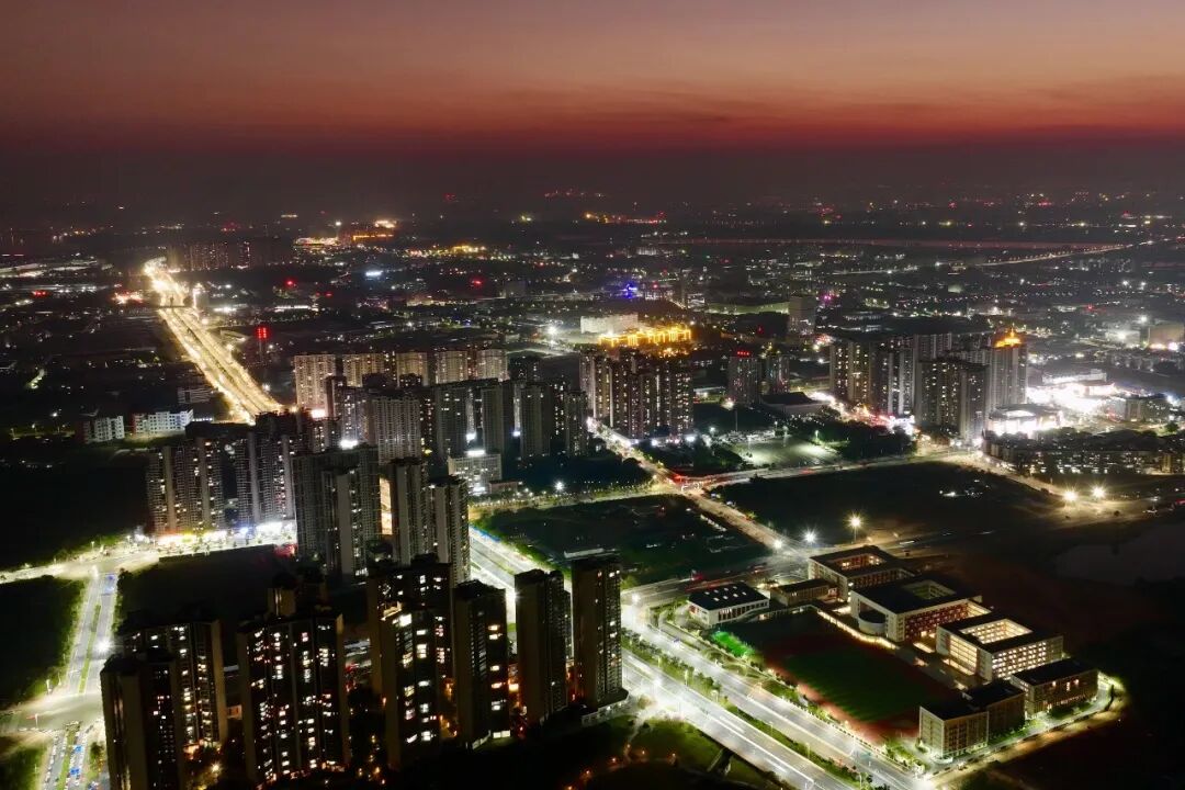 工业科技新城的钢铁脉络,在夜色中温柔舒展,灯火如星子般缀满楼宇,将冰冷的机械与炽热的梦想,糅合成一首无声的诗。