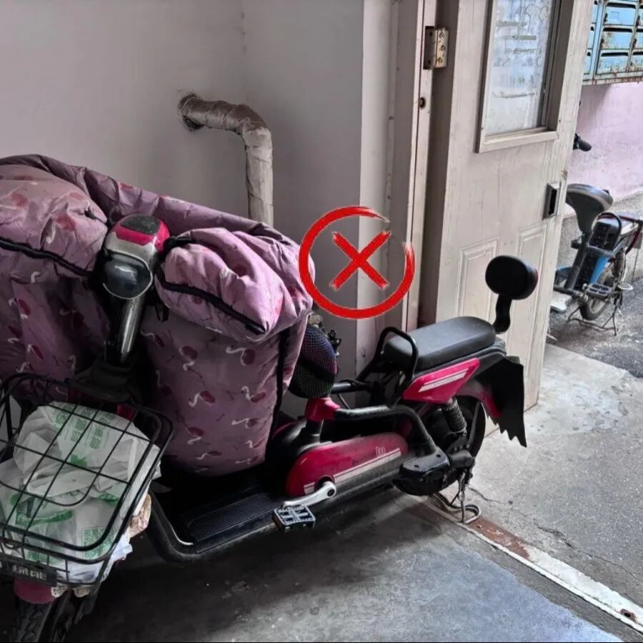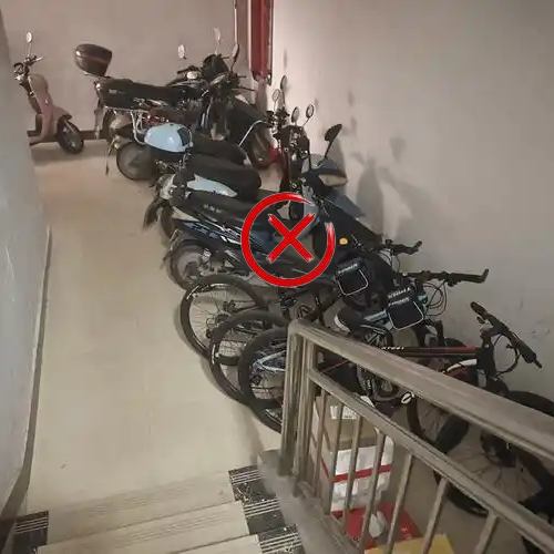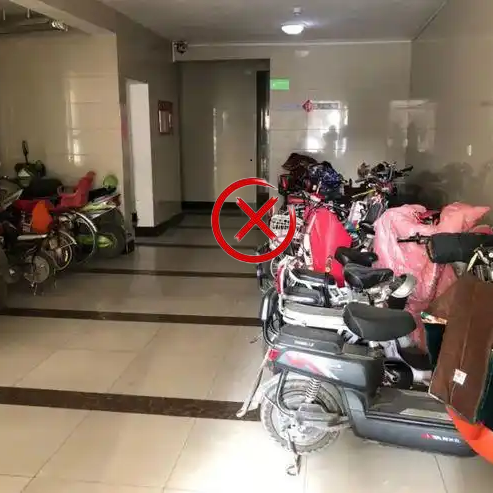 住宅建筑公共门厅、疏散走道、楼梯间等是居民疏散逃生的主要路径,当电动自行车在此类区域停放或充电时,一旦发生火灾,将导致安全出口被火焰、高温、有毒烟气封堵,影响居民疏散逃生,极易造成群死群伤的局面。