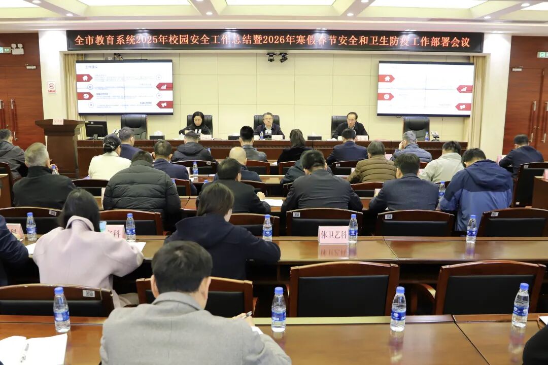 会议传达了国家、省、市关于做好当前和寒假前后教育系统安全稳定工作、安全生产工作、社会面风险隐患排查防控工作、消防安全和森林防灭火工作、意识形态和网络舆情风险防范工作、校外培训治理工作等有关通知精神,通报了2025年全市校园安全工作情况,分析研判教育系统近期安全形势,对2026年做好防溺水、防轻生、信访维稳、校车管理、消防安全、隐患排查、值班值守、健康教育、爱国卫生运动和传染病防控等工作进行了部署,共同保障师生安全与健康。