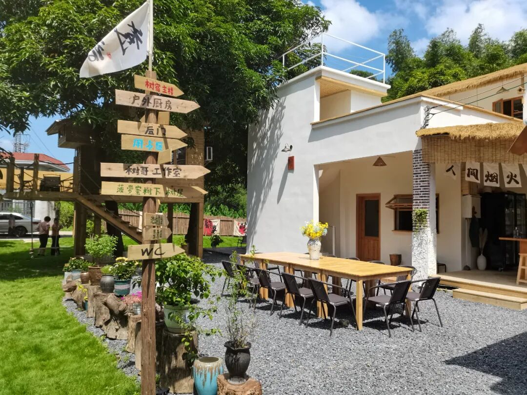 民宿内配套齐全,不仅设有专属咖啡厅,还有乡村私房菜、露营、烧烤等。