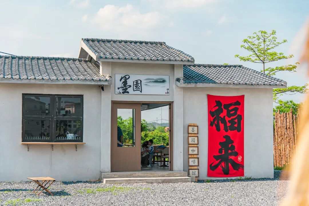 坐落在横沥镇墨园村的这家咖啡店,藏在拥有400多年历史的客家古村落中,依托首批中国传统村落的底蕴,由老房改造而成,自带古朴氛围感。