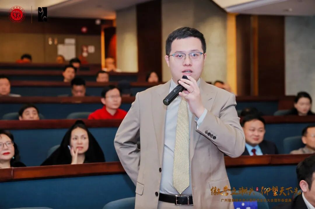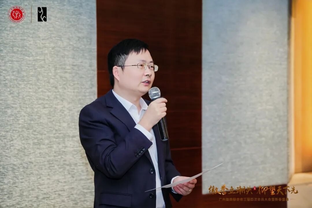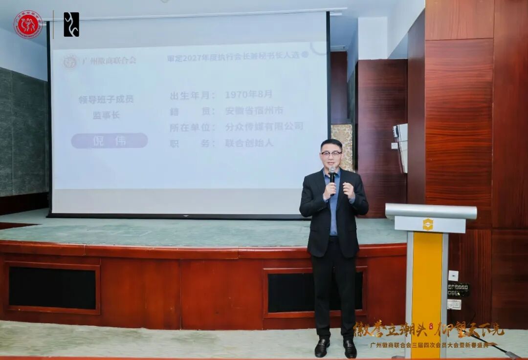根据商会《章程》及选举相关规定,经会长办公会提议并征求多方意见,会上一致举手表决同意分众传媒有限公司联合创始人倪伟作为2027年度执行会长。倪伟在随后的发言中表示,非常感谢理事会的信任与支持。他回顾了自己加入商会以来对商会发展的见证与参与,对商会在服务会员、凝聚乡情、促进粤皖两地经济交流中所发挥的积极作用给予了高度评价。他强调,未来将在张辉斌会长的带领下,紧密团结理事会成员和全体会员,恪尽职守,勤勉工作,共同推动商会迈上新台阶。倪伟的发言务实诚恳,展现了积极进取、勇于担当的精神风貌,赢得了与会人员的热烈掌声。