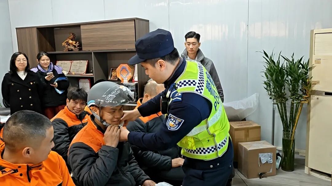 “头盔是骑行最后一道防线”,宣教警员现场示范安全头盔正确佩戴方法,提醒大家一定要扣紧卡扣,让防护真正到位。活动现场设置了有奖问答环节,围绕交通安全法规和骑行常识出题,快递小哥踊跃抢答,优胜者获得了安全头盔等实用礼品,在轻松互动中巩固交通安全知识。