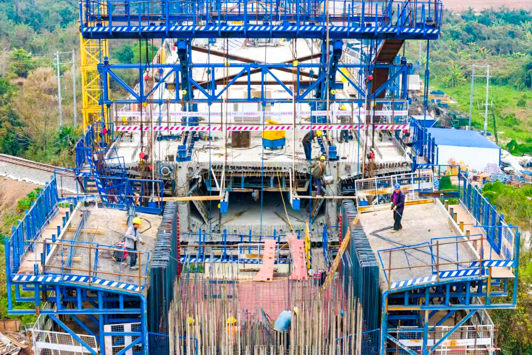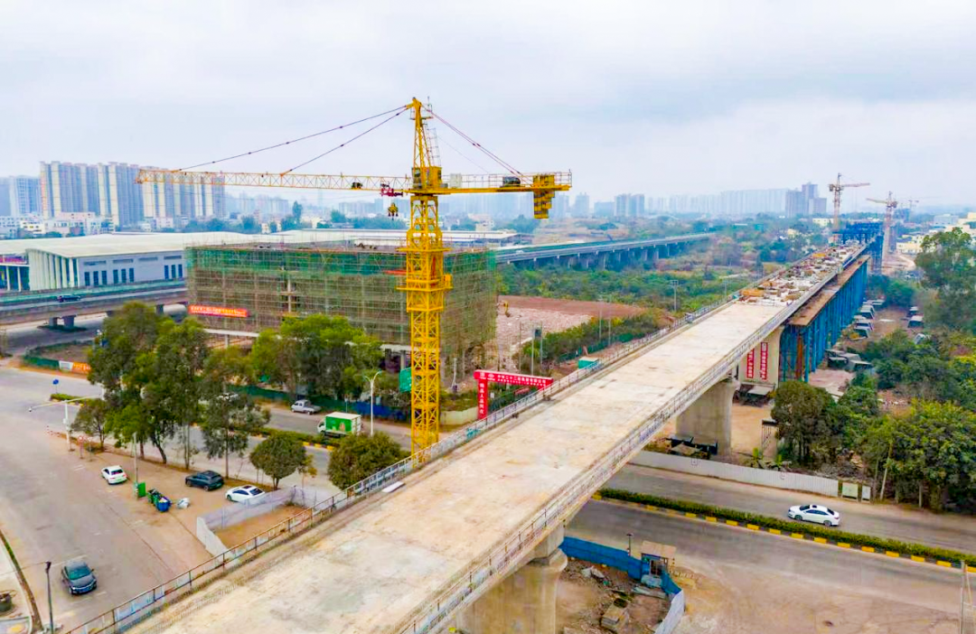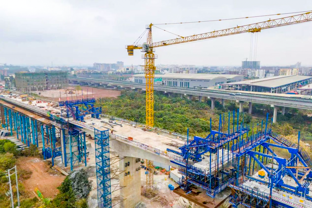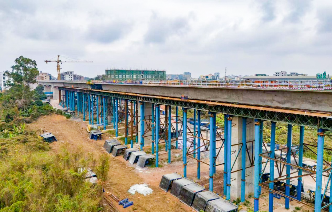 此次桥梁工程建设攻坚克难成效显著,关键节点目标均如期达成。截至目前,项目已完成钻孔桩2482根、墩身304座,箱梁预制521榀、架梁89孔,连续梁施工累计完成608延米,其中2联连续梁顺利合龙,另有2联连续梁进入合龙前冲刺阶段,连续刚构施工完成195延米,各项指标均超额完成阶段性计划。随着下部结构施工步入收尾阶段,项目建设重心正逐步向上部结构及桥面系工程转移,为后续线路贯通筑牢坚实基础。
