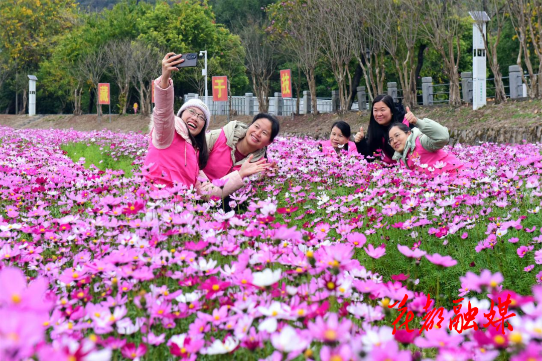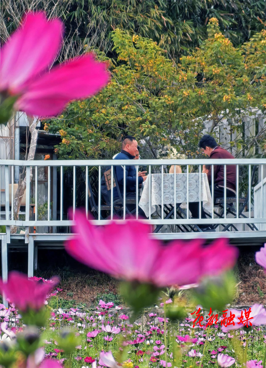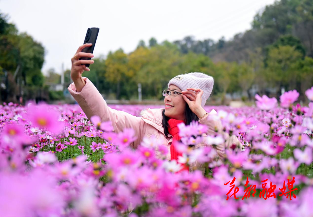 冬日的暖阳轻柔地洒落在山村的每个角落,连片的格桑花海正陆续盛放。漫步田间,但见粉、白、紫等各色花朵在微风中摇曳生姿,宛如一幅流动的油画,与四周的连绵青山、楼房屋舍、观光栈道等相映成趣,构成了一幅静谧恬美且充满盎然生机的乡村冬景图,吸引了不少市民游客闻香而至,一醉“春色”。