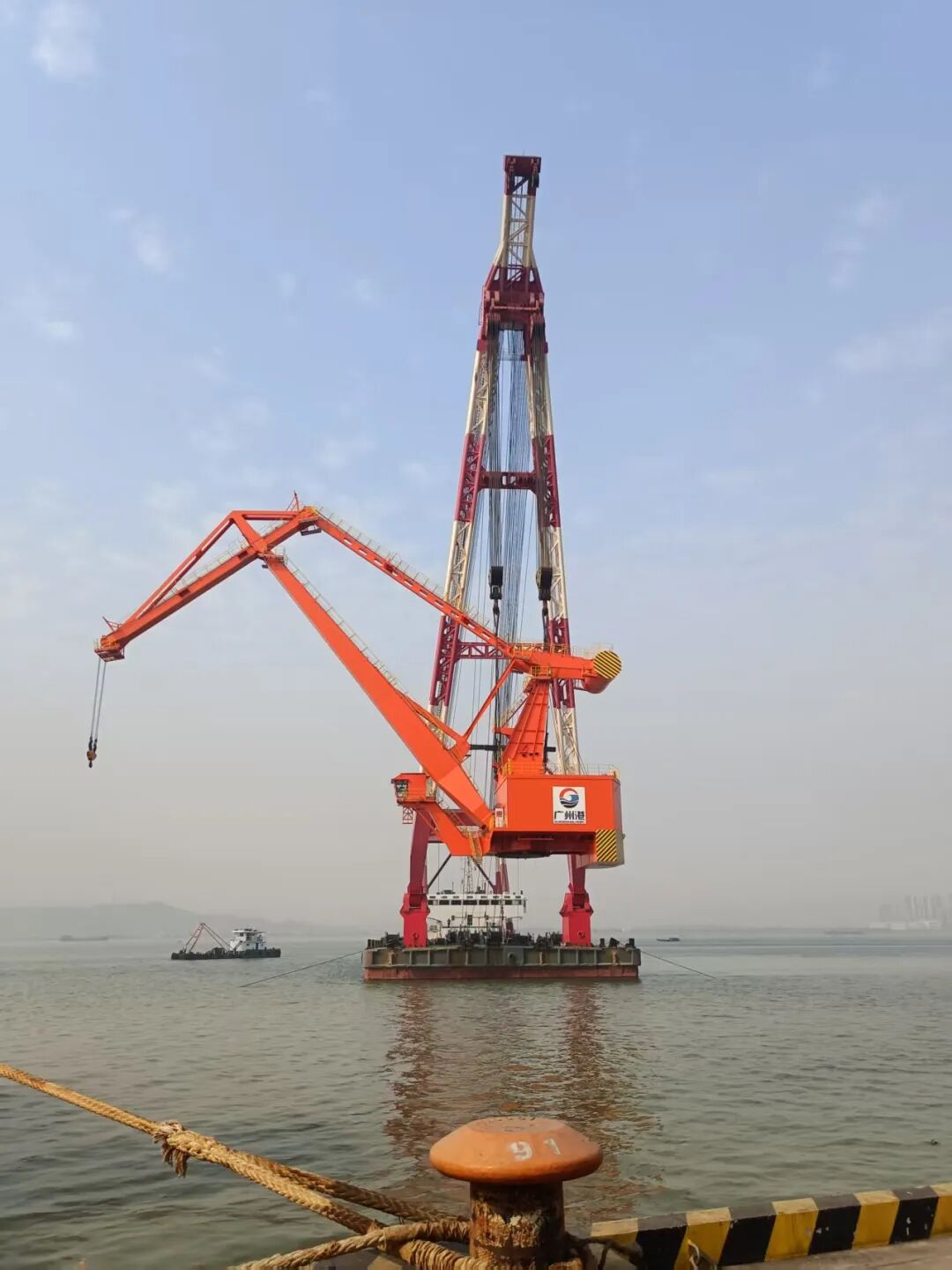 近日,载运两台千吨级门机的“永佳通宝”轮顺利靠泊麻涌镇新沙港区12#泊位。在多部门协同联动与严密安全保障下,经三天高效作业,两台千吨级“钢铁巨人”(门机)于新沙港区二期码头顺利安装就位,进一步提升新沙港区二期码头装卸效能。