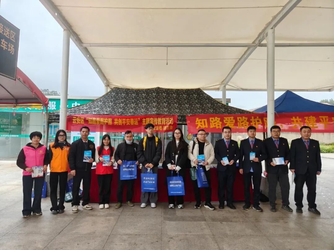 近日,云安区委政法委、团区委联合铁路部门在南广高铁云浮东站开展“知路爱路护路,共创平安春运”主题宣传教育活动,筑牢铁路安全防线、增强群众知路爱路护路意识。