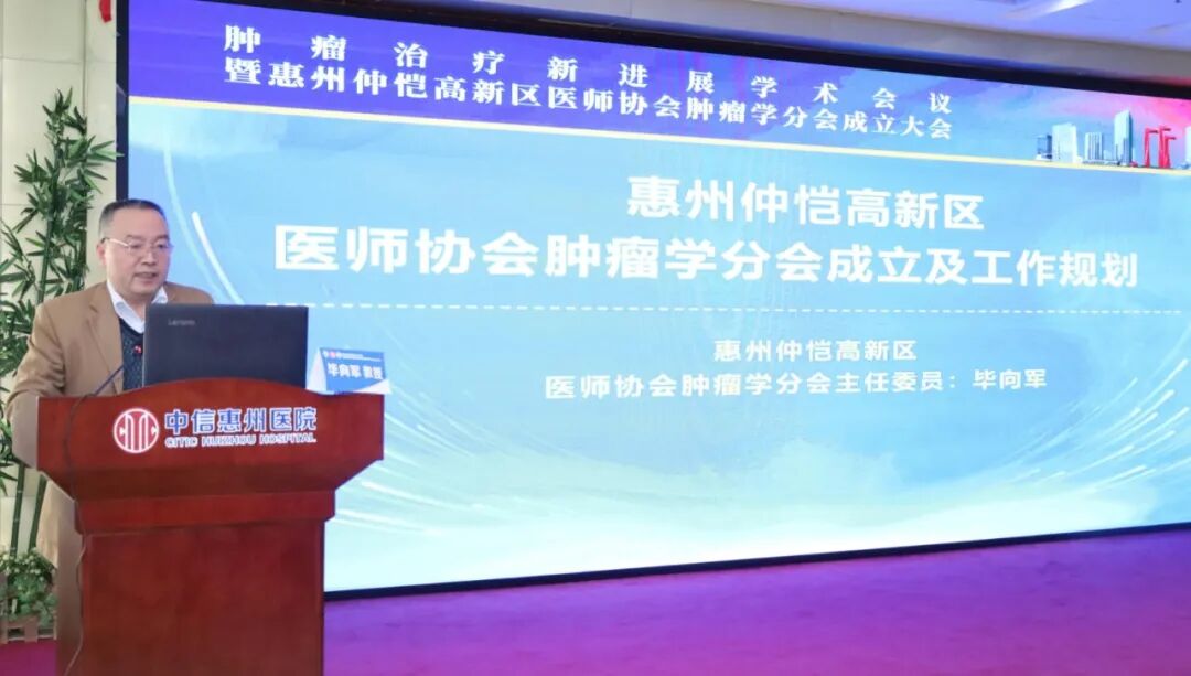 在全场嘉宾的共同见证下,会议顺利完成分会选举、聘书颁发等重要环节,惠州仲恺高新区医师协会肿瘤学分会正式宣告成立,为区域肿瘤学科协同发展按下“加速键”。新当选的惠州仲恺高新区医师协会肿瘤学分会主任委员毕向军作惠州仲恺高新区医师协会肿瘤学分会成立及工作规划。