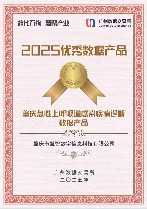 近日,市国联公司下属肇智公司凭借其自主研发的“肇庆急性上呼吸道感染疾病诊断数据产品”,荣获广州数据交易所颁发的 “2025优秀数据产品”称号!此次获奖,不仅标志着肇智公司在医疗健康数据领域的实践获得行业高度认可,也展现了其在数据要素市场化进程中的前瞻性与先进性。
