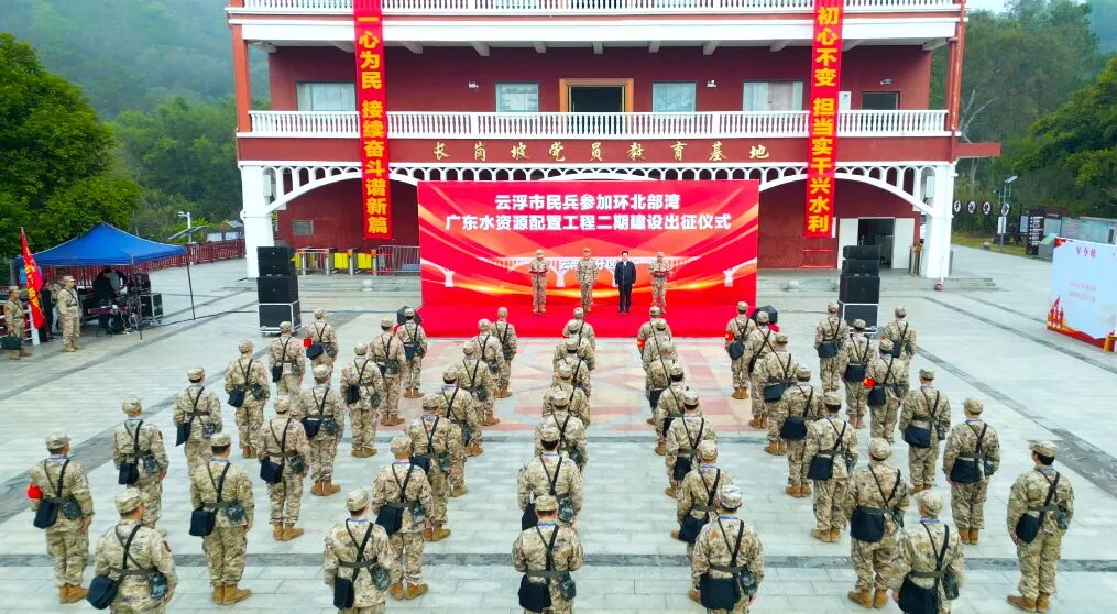 1月26日,云浮市民兵参加环北部湾广东水资源配置工程二期建设出征仪式在长岗坡党员教育基地举行。罗定市50名优秀基干民兵将奔赴湛江市遂溪县执行山塘清淤任务,以实际行动践行“为人民服务”的使命担当。云浮军分区主要领导,罗定市委副书记、市长姚家耕出席仪式。