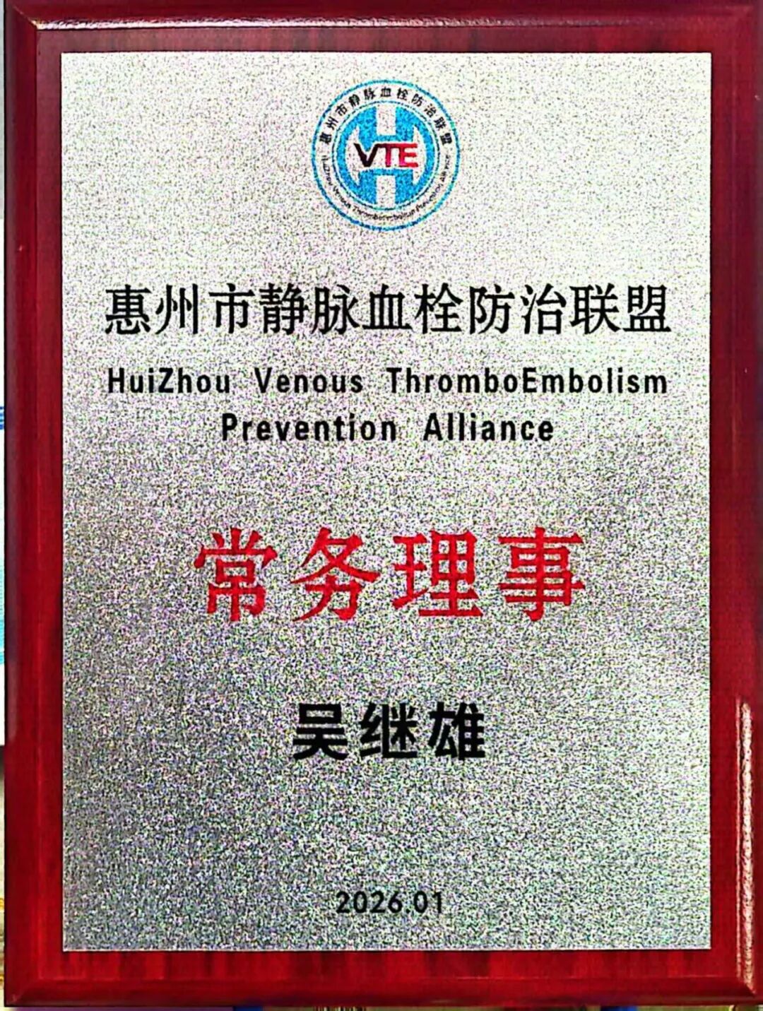 医学影像中心主任吴继雄、副主任翟建春当选惠州市静脉血栓防治联盟常务理事