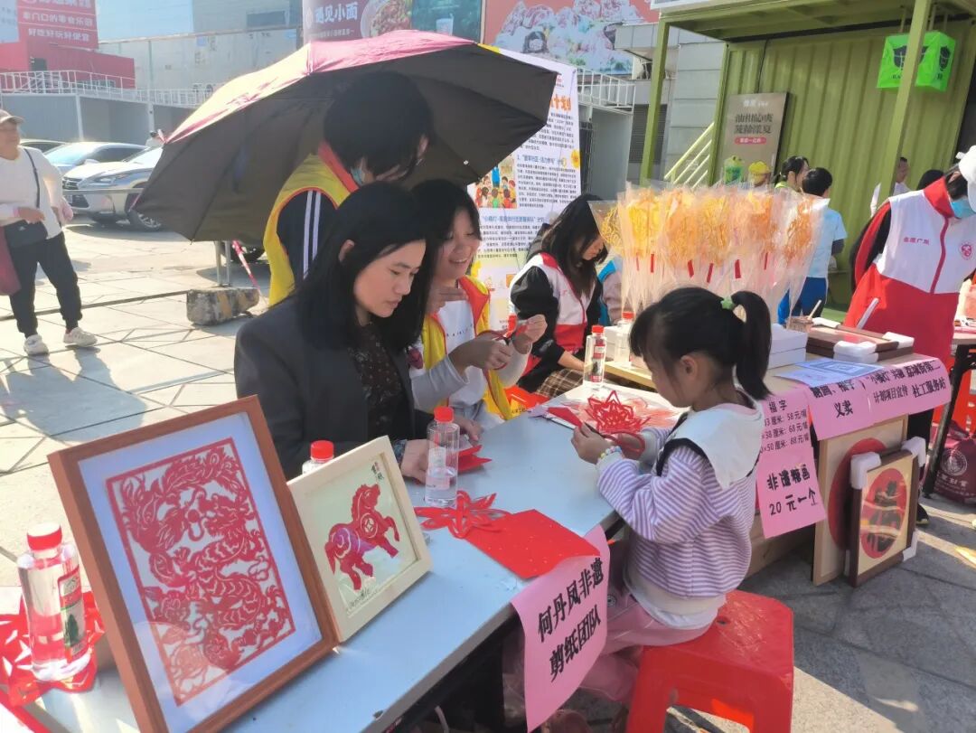活动的四大公益体验区亮点纷呈,成为居民争相打卡的“爱心坐标”:居家安全游戏体验区里,老少携手闯关答题,欢声笑语驱散了冬日寒意,在互动中筑牢安全防线;项目宣传与义卖区上,手工好物、生活日用琳琅满目,DIY互动与感人公益故事交织,每一笔消费都是一份爱心,所有善款全额存入公益专项账户,定向帮扶困难群众;健康生活体验区暖意融融,星羽口腔、广安医院等机构的专业人员现场提供口腔检查、血压血糖测量、视力检测等免费服务,医护志愿者的贴心守护让健康触手可及,为冬日健康保驾护航;非遗文化体验区人气爆棚,何丹凤非遗剪纸团队的精巧剪裁、糖笺记糖画的灵动勾勒,传承人边教边讲,让居民在动手实践中触摸传统文化的温度,感受匠心与爱心的碰撞。