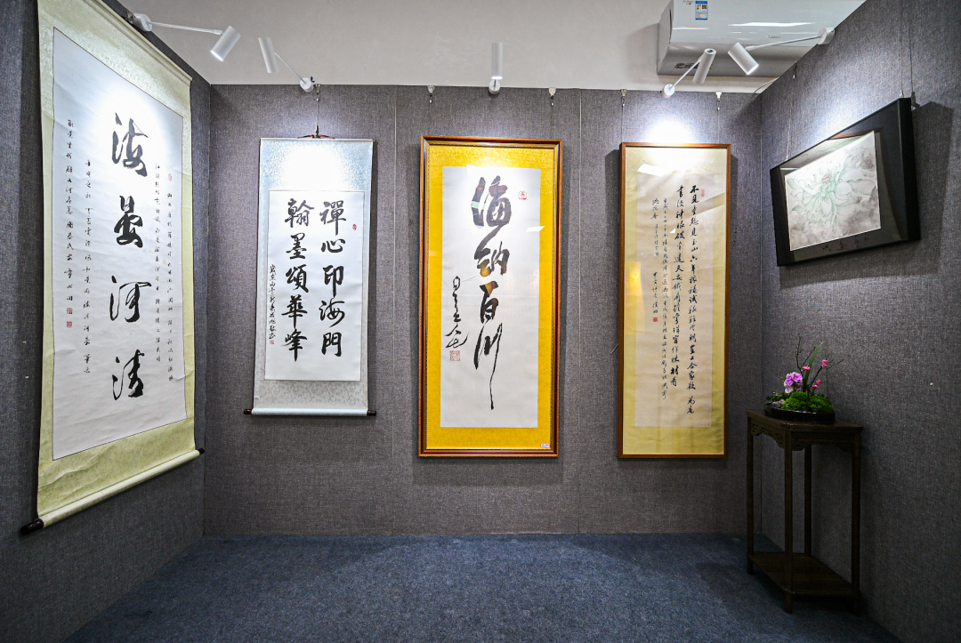 “禅心印海门 翰墨颂华峰”书画作品展汇聚南北艺术名家的墨宝80余幅,呈现了一场高雅的文化盛宴。展品中包括弘一法师、星云大师、虚云长老、本焕长老、赵朴初先生等文化名家的手迹,这些作品不仅是艺术珍品,也是中华文化精神的重要载体。