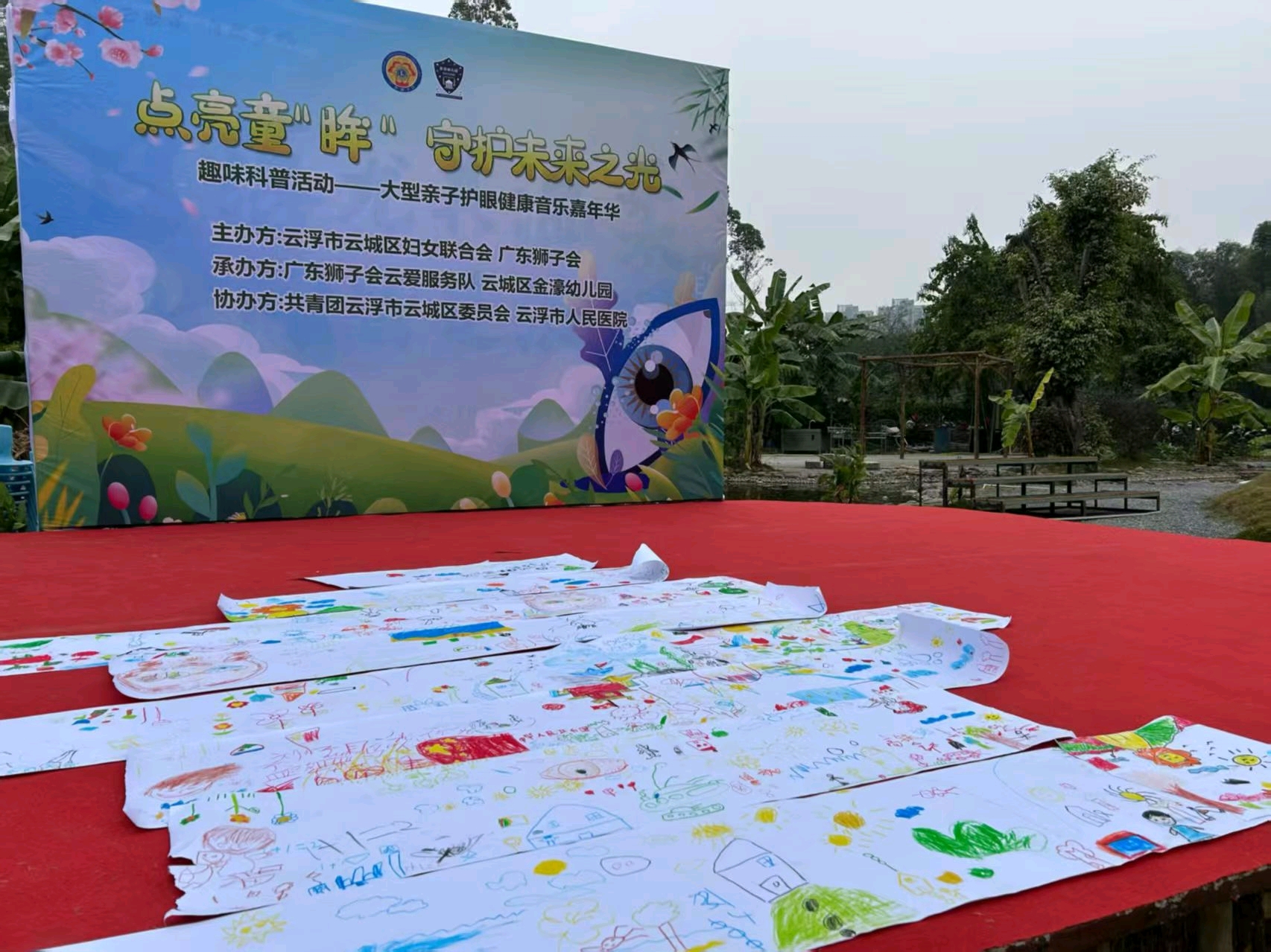 活动现场,“我眼中的缤纷世界”大型创作环节为孩子们提供了展现创意的平台。大家用五彩画笔勾勒出眼中的美好景象,在创作中践行“少看电子产品、多用双眼发现自然之美”的理念。志愿者们全程护航,引导孩子们有序参与各项活动,现场歌声、笑声与掌声交织成温馨的乐章。