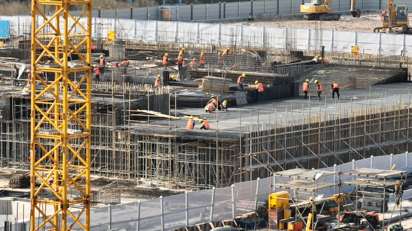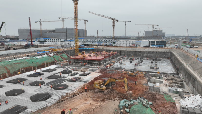 施工片区吊塔林立,热浪涌动