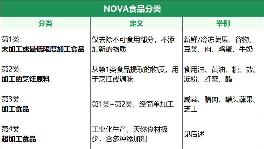 为帮助公众理解食品加工程度,巴西圣保罗大学Carlos Monteiro教授提出NOVA食品分类体系,按加工水平将食品分为四类: