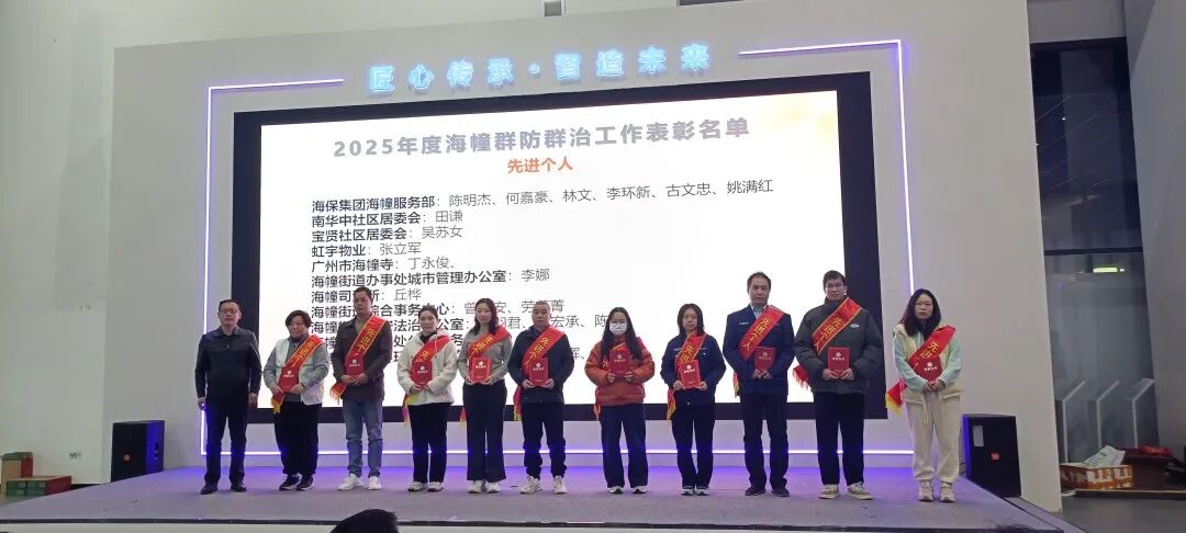 现场还举行表彰仪式,街道对年度先进集体与个人进行了表彰。这些扎根一线的奉献者是“人人参与、人人尽责”治理理念的忠实践行者,筑牢了平安海幢的坚实根基。