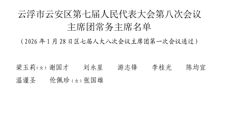 云浮市云安区第七届人民代表大会第八次会议主席团常务主席名单