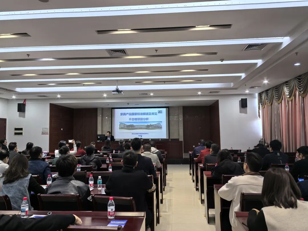 会上,由佛山质量计量监督检测中心高级工程师黄毅烽围绕最新版国家强制性标准与推荐性标准,对家具通用技术条件、安全性能(包括结构安全与阻燃特性)、有害物质限量(如甲醛、重金属释放量)以及使用说明规范等核心内容进行了细致梳理与深入讲解,明确了各项技术指标的具体要求和检测方法。针对近年来各级监督抽查和市场反馈中反复出现的质量问题,专家结合典型案例,重点剖析了“甲醛释放量超标”“力学性能不达标(如柜类稳定性不足)”“木工要求不合格”“标识标注不规范”等高频问题。为企业提供了可操作的风险预警机制与质量改进方案,助力企业从源头规避合规风险、提升产品竞争力。
