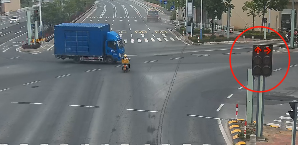 2024年3月28日,江门一男子驾驶摩托车行经某路口时,违法闯红灯,与正常行驶的轻型厢式货车发生碰撞,险些被卷入车底。事故造成两车受损,所幸摩托车驾驶人当时正确佩戴了安全头盔,未有生命危险。