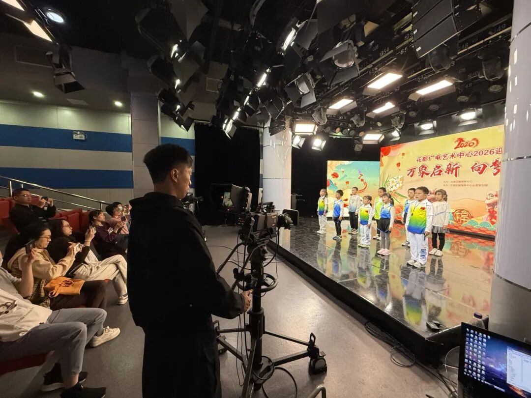 暑期专业考级、定期举办汇报演出、融媒体中心节目录制、社区文化活动主持等,让每个孩子都有实实在在的登台机会——正如刚刚圆满落幕的迎春汇演,孩子们在真实的专业级舞台上锻炼,面对导演及摄像老师们的专业指导,家长在台下共同见证成长。