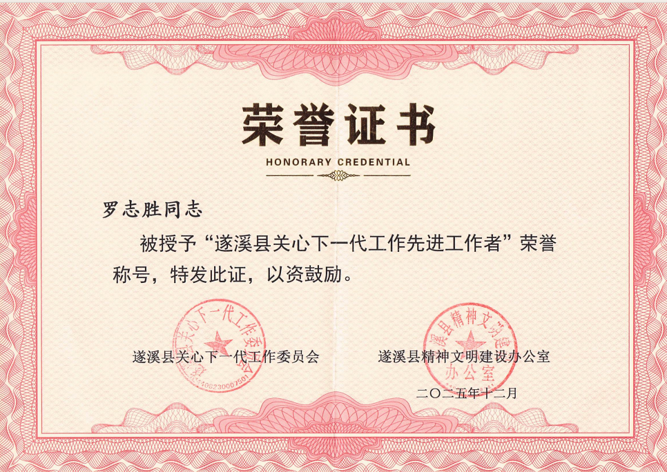 2025年,遂溪县关工委获评“全国先进集体”称号。1月22日,遂溪县关工委召开县关工委成立25周年纪念大会,对全县关心下一代和精神文明建设工作中表现突出的先进集体与优秀个人进行隆重表彰。其中,我院2021年以来在精神文明建设和护航青少年健康成长等工作中举措扎实、成效显著,成功获评县级关心下一代工作“先进集体”称号;罗志胜同志在5年工作中履职尽责、表现突出,同步获市、县级关心下一代工作“优秀个人”称号,集体与个人双双获奖、荣耀加身!