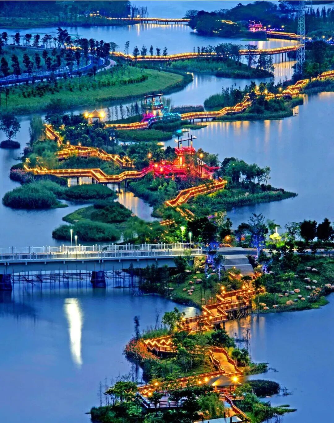 花都湖夜景(关振伦 摄)