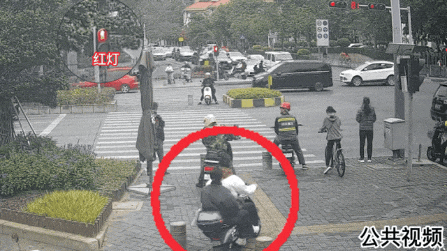 闯红灯还不戴头盔,险中险!