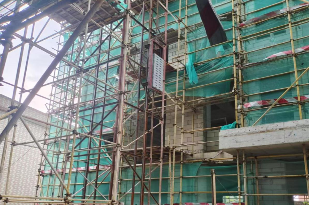 此次被查处的项目是永振公司承建的广东优农舍建筑科技有限公司生产基地项目。2025年8月,县住房城乡建设局执法人员在建筑领域“拉网式”安全排查中发现,该项目施工现场问题突出,安全隐患触目惊心——施工现场的物料提升机,在未经验收合格、未办理使用登记的情况下擅自投入使用,如同一颗“不定时炸弹”;用于高空转运物料的落地式卸料平台,其搭设未编制专项施工方案,属于典型的“无图施工”、冒险作业。