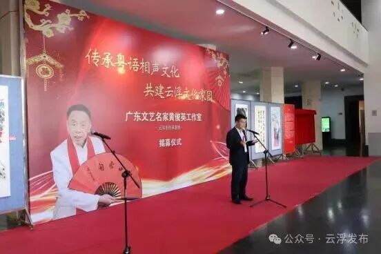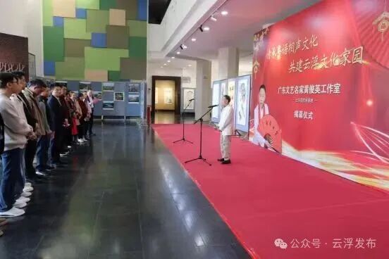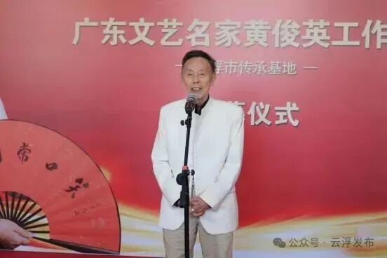 近日,黄俊英工作室云浮传承基地在云浮市文化馆揭幕。市文广旅体局主要负责人在开幕式上致辞,并与黄俊英先生共同为工作室揭幕。为探索文化传承发展新路子,集聚建设现代生态城市所需的文化艺术人才,云浮市诚意邀请黄俊英开设工作室。黄俊英工作室云浮传承基地的设立,既是云浮深耕地域文化、活化传统艺术的关键一步,更是云浮与大湾区文化深度联动的重要纽带。