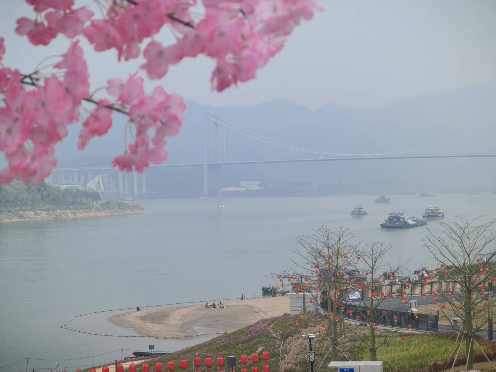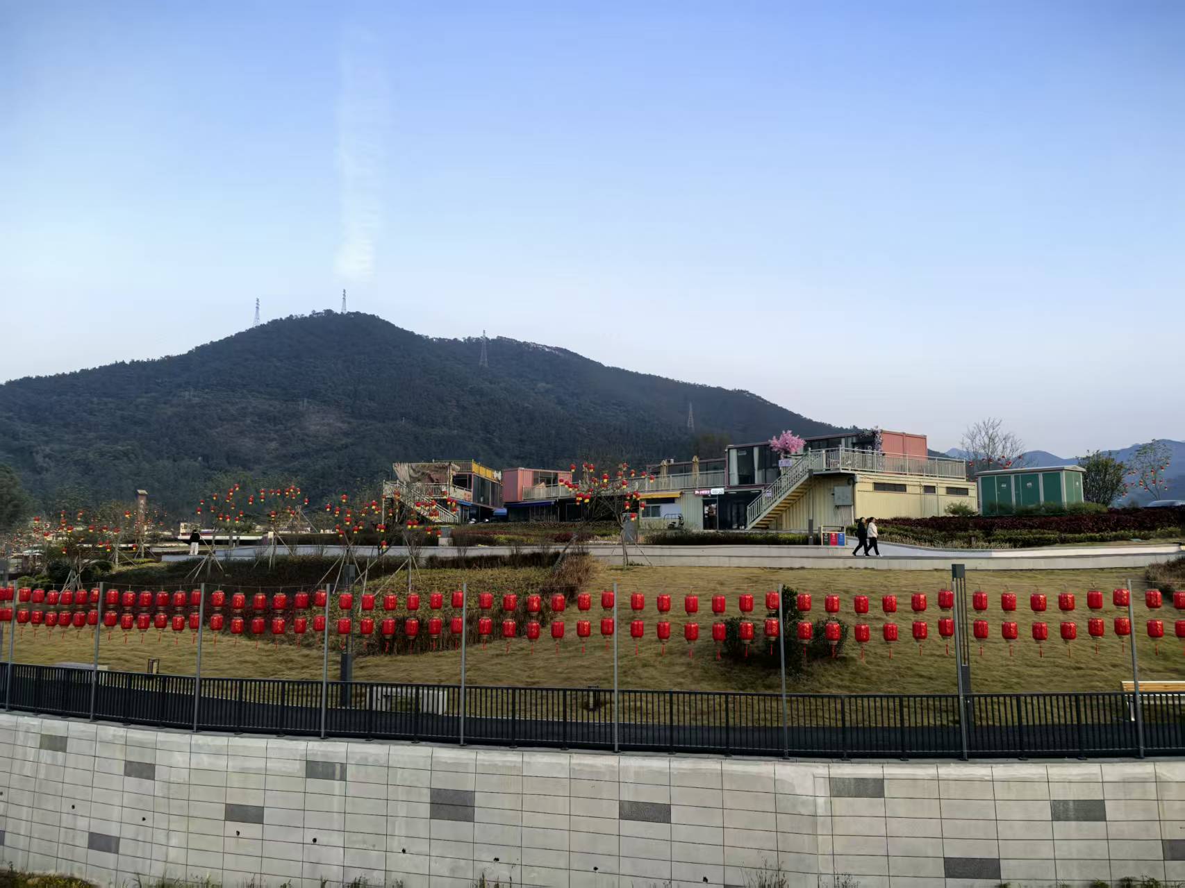不仅村庄内部年味弥漫,连着湾边村的云帆公园也换上了“新妆”。花开成海,绿意点缀,与潺潺江水相映成趣,吸引了不少周边居民和游客前来漫步赏景、拍照留念。红灯笼沿着步道蜿蜒延伸,与肇云大桥、机车驿站、24小时微店等现代景观交融,勾勒出一幅既有传统韵味又显生机活力的乡村画卷。