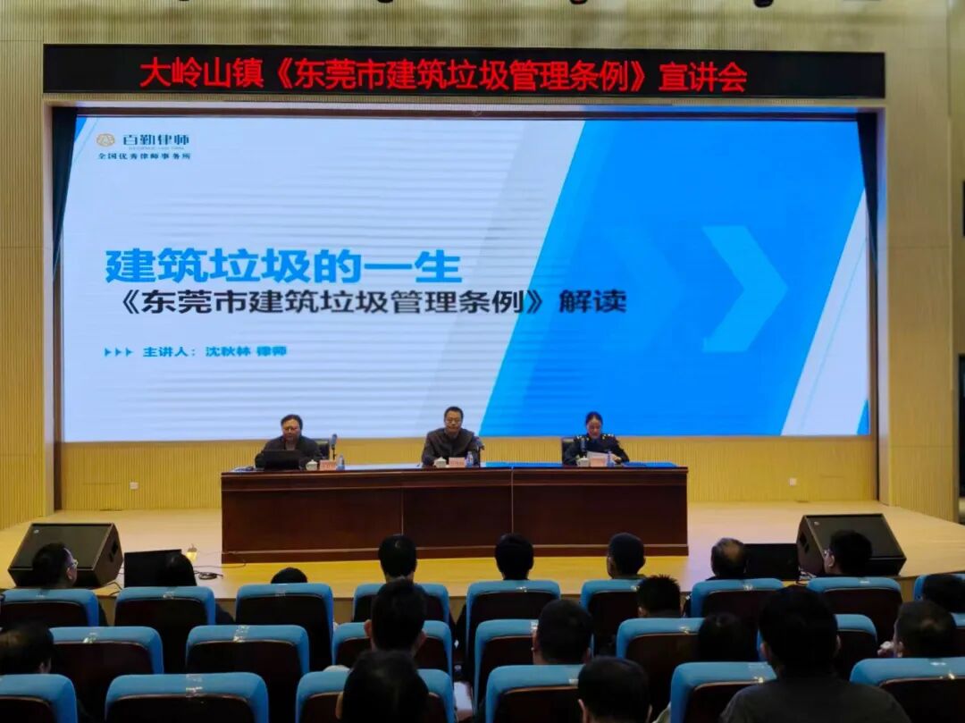 本次宣讲会特别邀请广东百勤律师事务所沈秋林律师进行专业解读。沈律师围绕《条例》立法背景、核心条款及实践应用,以“建筑垃圾的一生”为生动脉络,系统讲解了建筑垃圾从产生、运输到处置的全链条管理要求,重点对居民装修垃圾管控、工程建设源头减量等与群众生活、城市发展密切相关的内容进行了深入剖析。参会人员纷纷表示,通过此次宣讲培训,进一步明确了自身工作职责与监管方向,为后续《条例》在大岭山镇的顺利落地执行筑牢了基础。