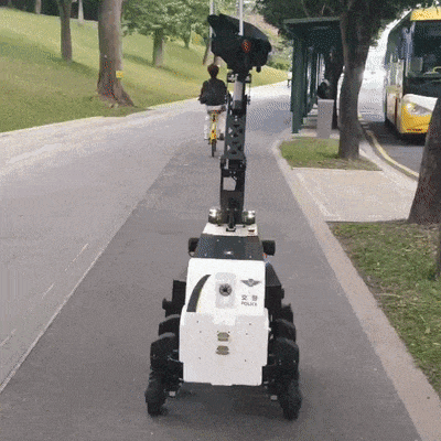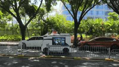 ▲多功能无人巡检车在道路上自动巡逻。