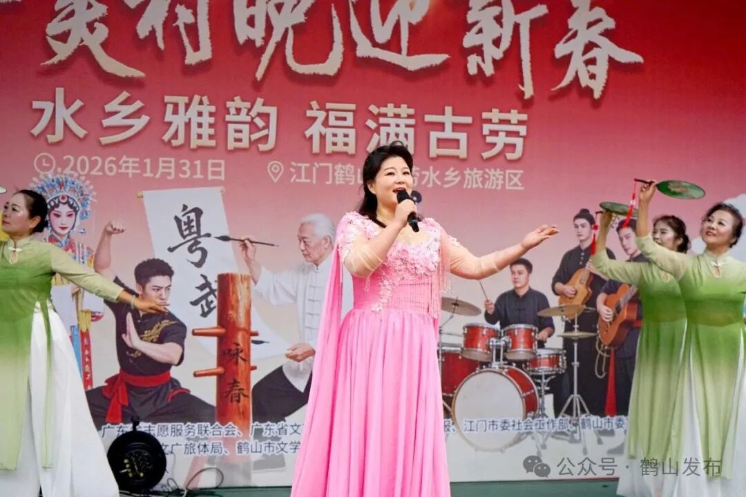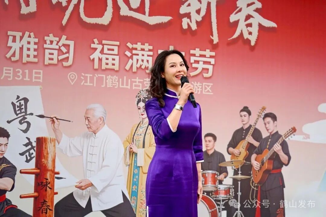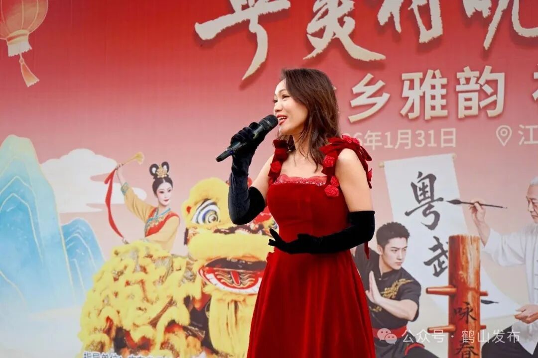 活动伊始,醒狮表演率先点燃现场气氛,以“水乡韵・乡土情・时代风”为主题的舞台文艺表演正式开演。鹤山原创粤语歌伴舞《燃亮》以歌声鼓劲,激昂演绎龙舟精神,再现水上竞渡的拼搏风采。粤语金曲《祝福你》《堆积情感》唱出岭南新春独有的味道。国家一级演员、梅花奖得主吴非凡登台献唱经典粤曲《南国红豆》《荔枝颂》选段,戏迷直呼过足耳瘾。歌舞《醉美水乡》《水岸家园》以水乡为主题,又以水乡为舞台,让观众沉浸式徜徉水乡画卷,感受鹤山独有的魅力。鹤山咏春传承人带领弟子们施展拳脚,其动作刚柔并济、招式利落,引得喝彩连连。