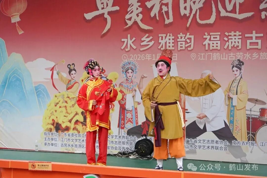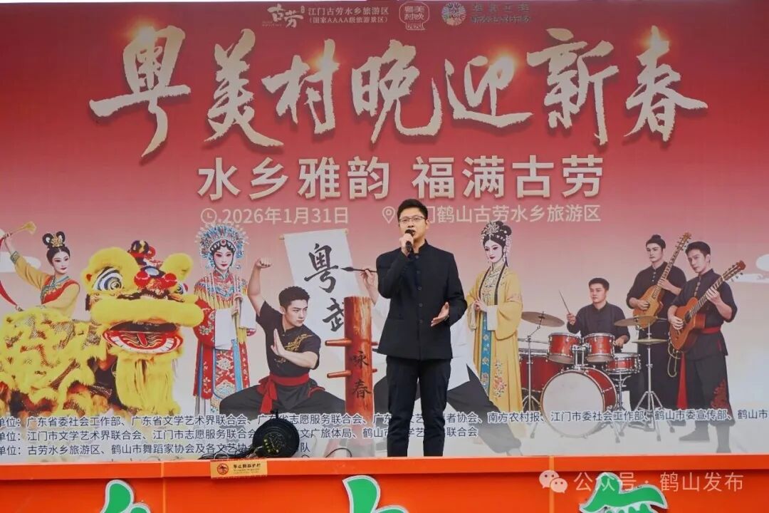 1月31日,江门古劳水乡旅游区洋溢着浓浓的新春气息,“粤美村晚迎新春”活动如期启幕。这场融合文艺表演、非遗展演与民俗互动的文化盛宴,吸引了众多市民游客齐聚水乡,感受岭南年味。本次活动由省文联、省志愿服务联合会、鹤山市文联主办。