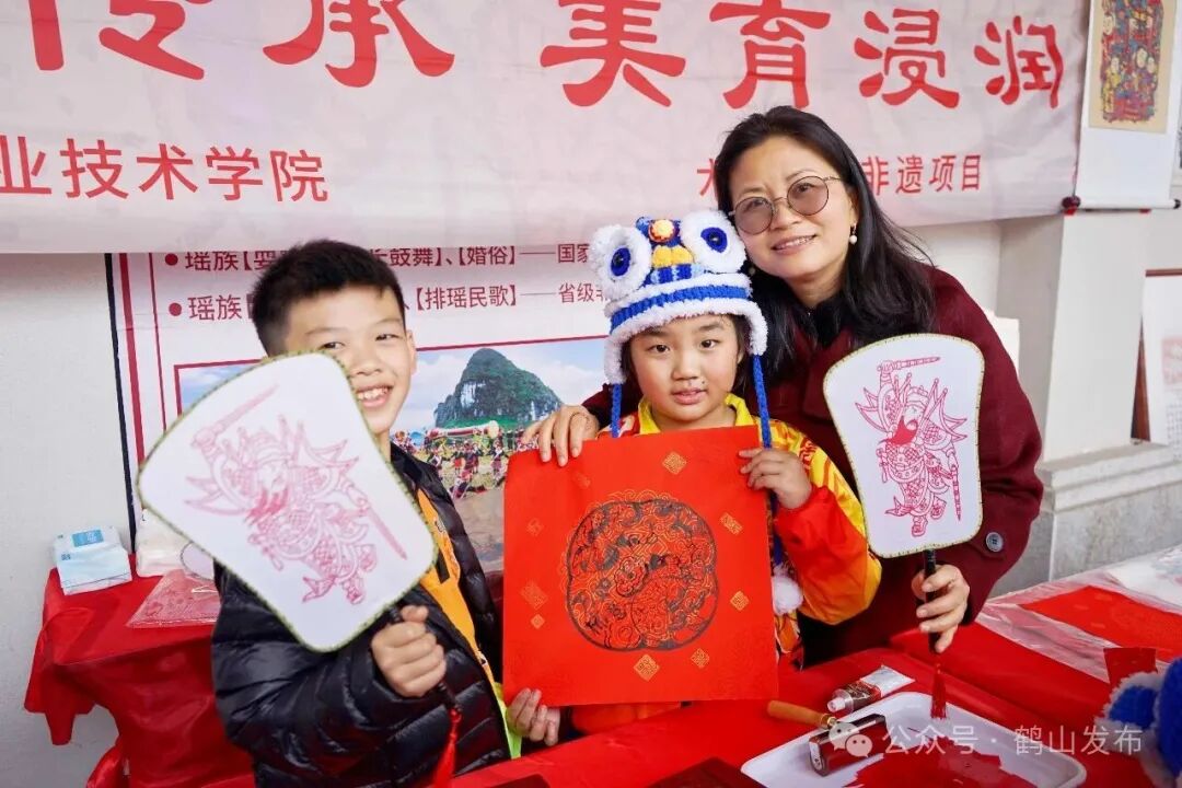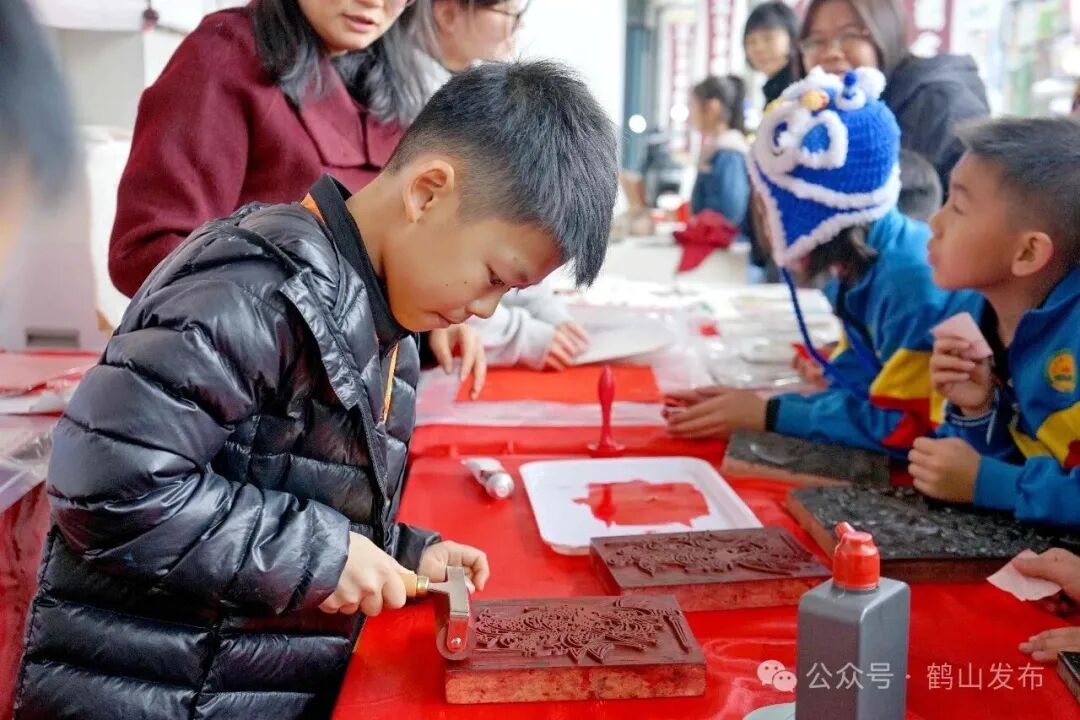 此外,舞台旁非遗民俗展示区热闹非凡,小朋友们自己动手,把木雕版画拓印到扇子上,欢声笑语里满是对非遗技艺的喜爱与探索。