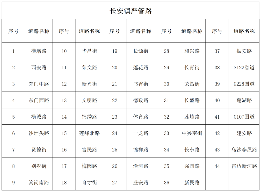 据了解,为进一步加强辖区道路交通秩序管理,有效消除道路交通安全隐患,近期,东莞市公安局交通管理支队长安大队将对镇内44条交通严管路段开展拉网式巡逻管控和重点整治,发现违停立即依法拍照取证,严管严控各类违停行为。此次整治的严管路段具体包括太安路、建安路、振安路、福海路、横东路—兴五路、横西路—兴发北、西大路—振安路、中南北—中南路等。