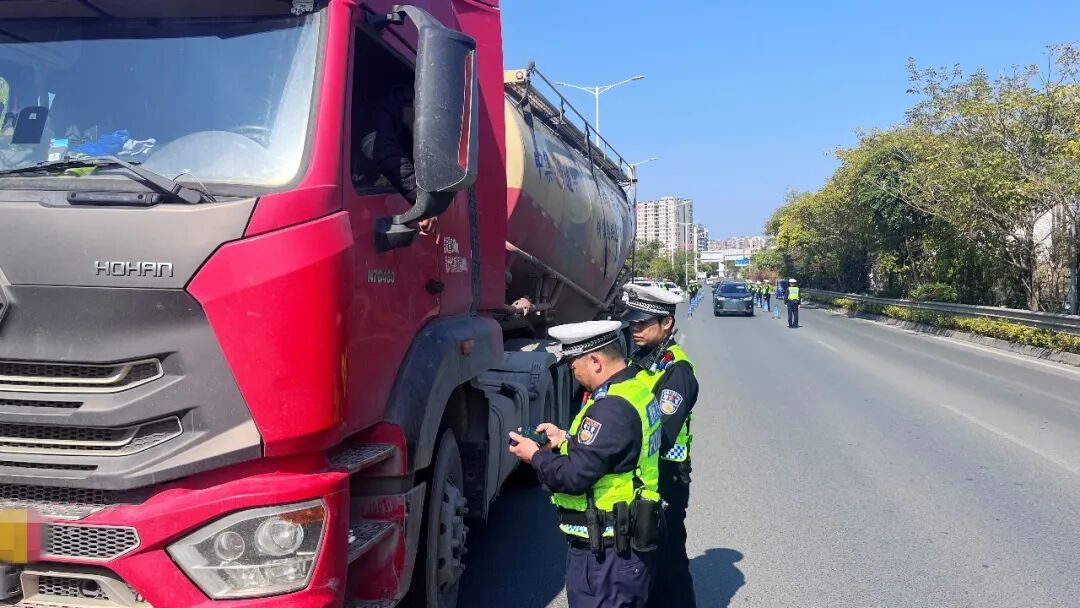 当天上午,记者在县城悦龙公园春运临时执勤点看到,龙门县公安局交管大队组织警力对过往车辆开展逐车核查,在常规安全检查基础上,重点排查车辆是否存在违规运输、随车携带烟花爆竹等行为,从源头防范易燃易爆物品上路引发的安全风险。