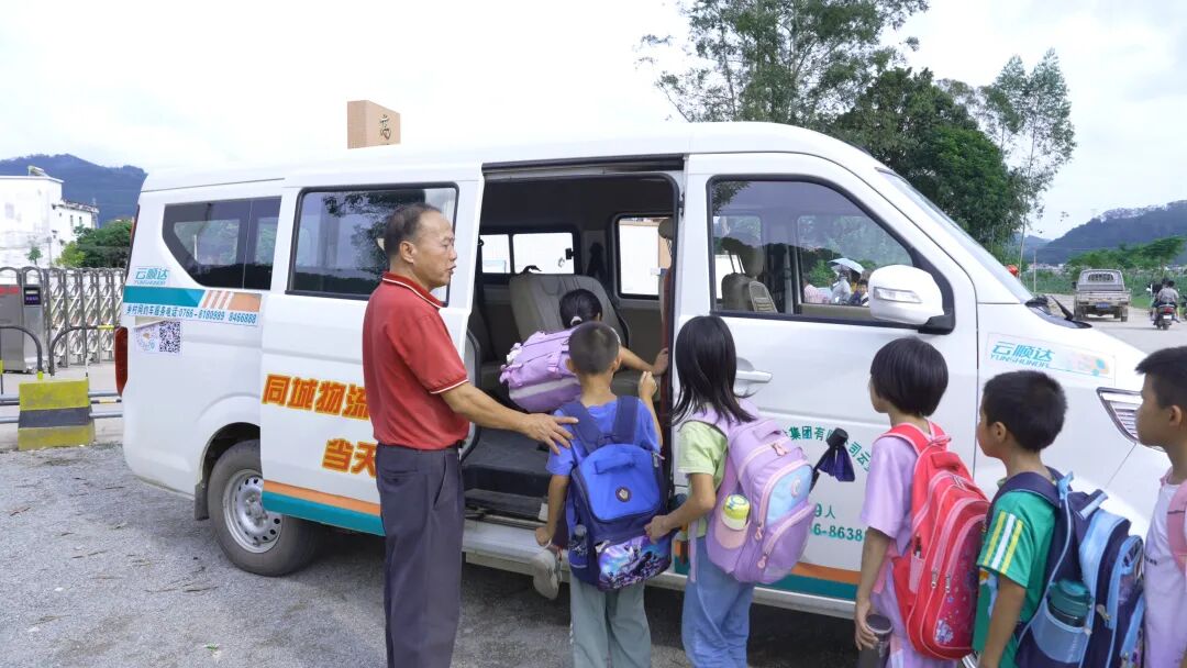 ▲云安农村客运“护学专线”在校门口接送学生,切实保障学生从家门到校门的“最后一公里”出行顺畅