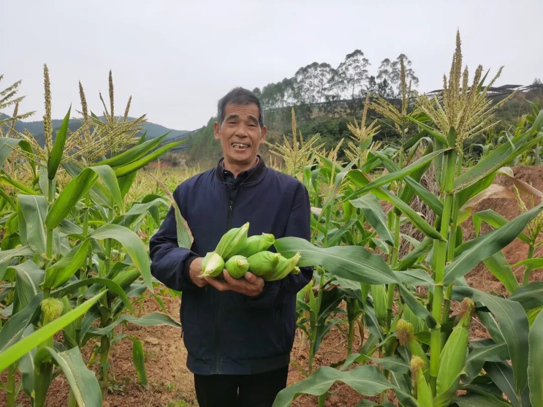 富林镇界石村玉米种植基地负责人黄荣生:我承包了200多亩地,实行轮作种植模式,一造种植水稻,其他时间轮作玉米、花生、红薯,这样能有效增加产量、提高质量,还能增加收益。我现在种了30亩玉米,都是订单生产,销路完全不用愁,今天刚摘了3000斤玉米发往广州,当前批发价1.7元每斤,这30亩玉米一造产值大概能有10万元。