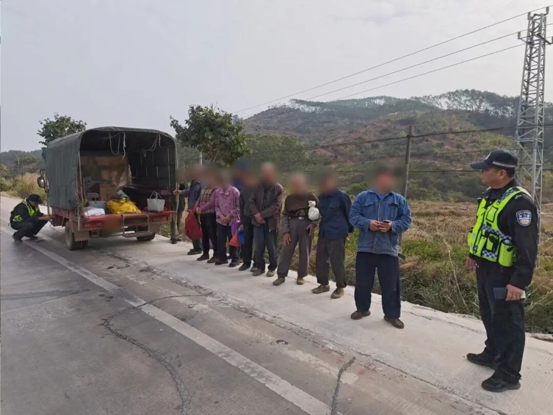 1月15日10时许,横州市公安局交通管理大队联合南乡派出所在209国道南乡镇北华村路段开展“交所合一”勤务。执勤过程中,民警发现一辆三轮载货摩托车涉嫌严重超员,随即依法将其拦截检查。