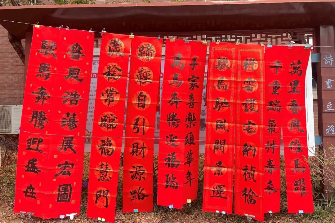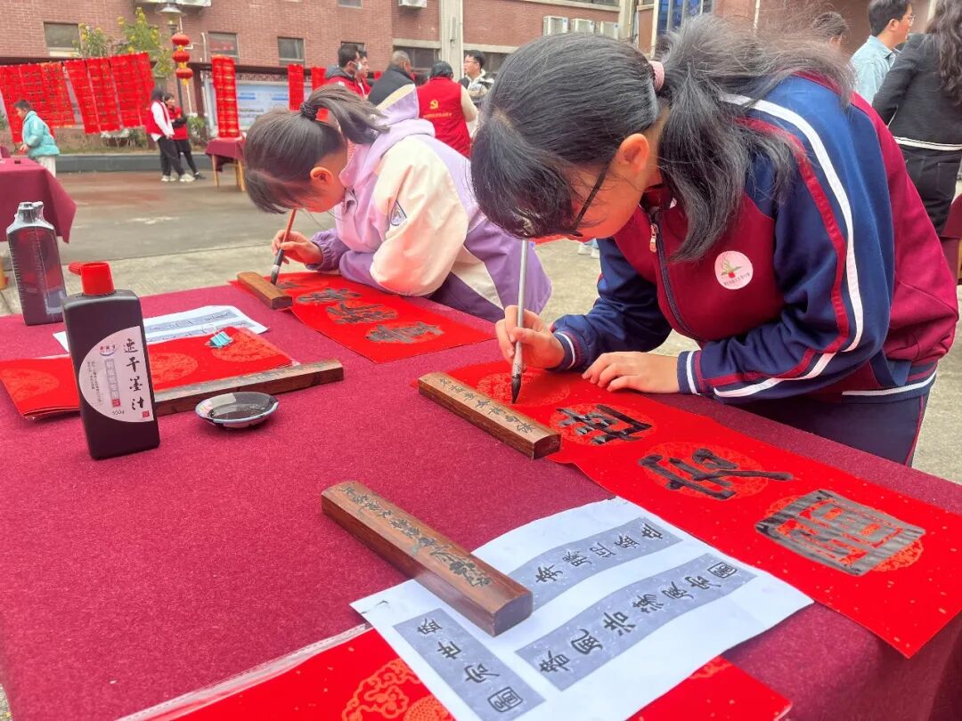 暖意融融的活动现场墨香氤氲,处处洋溢着喜庆祥和的新春气息。实验小学师生们挥毫创作春联,楷书端庄工整、笔力遒劲,行书飘逸流畅、气韵生动。“马跃山河添瑞气 春归社区纳安康”等作品寓意吉祥,饱含对马年新春的美好憧憬。