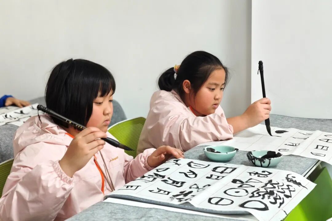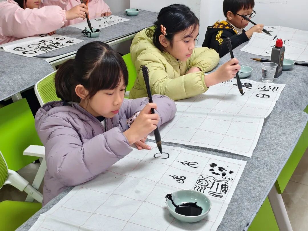 原本对写毛笔字略显生疏的孩子们,渐渐找到握笔诀窍,课堂上墨香四溢,欢声笑语不断,大家在实践中感受着书法艺术的独特魅力。